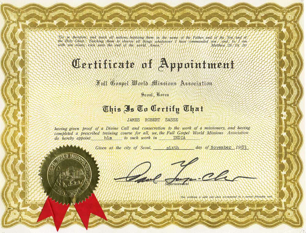Last but not least my wonderful wife Hamsa who has been so faithful over our past 35 years of marriage that has made all this work possible! Also to my Grandparents Edgar and Ethel Sasse who were in much prayer for me to be in service to Christ on the Mission Fields of the World. To my parents Robert and Bonnie Sasse for their directing me as their fine example of righteous living so that I was able to then make the right choices in my life!